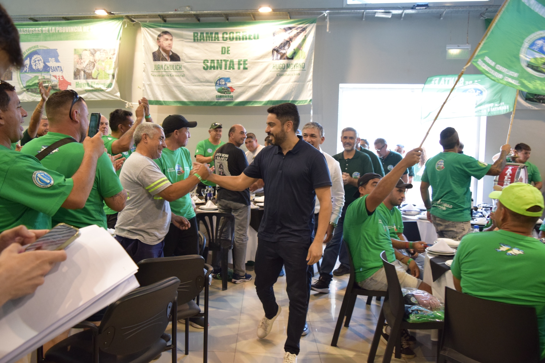 La jornada contó con la presencia del compañero Huguito Moyano, recientemente electo diputado nacional, quien se acercó especialmente para acompañar la asamblea y saludar a los trabajadores santafesinos. A su vez, el secretario general de la Federación Nacional de Camioneros, Hugo Moyano, envió su respaldo a través de un mensaje en el que celebró “la fortaleza institucional y el compromiso de los camioneros de Santa Fe con la defensa de sus derechos y la unidad del movimiento obrero”. También, nuestro histórico líder, se puso a disposición para acompañar a cada trabajador camionero santafesino.